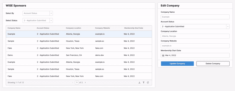 Beyond managing both sides of their community, the WISE team has also started managing networking events, they call them “Pods,” in Retool as well.