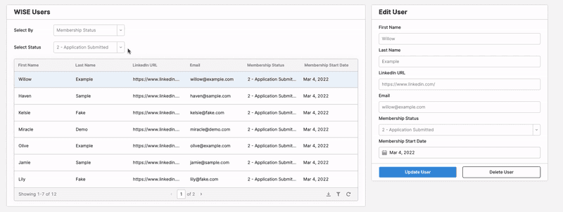 The first app the engineering team shipped was the WISE Users app, where the WISE team tracks all of their community members.